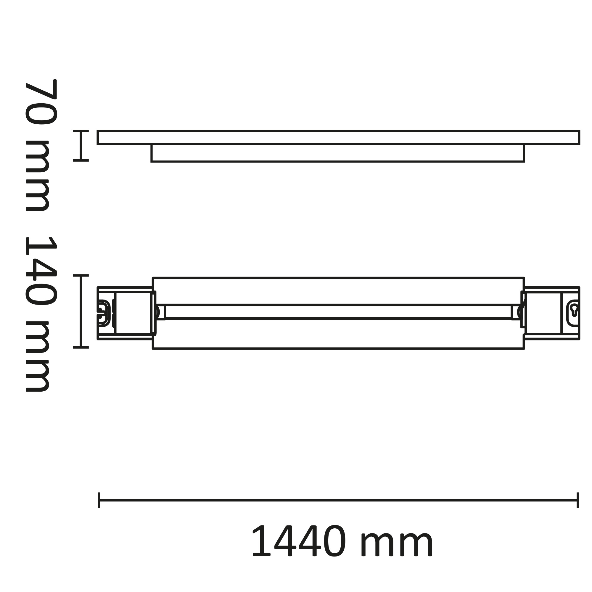 Den leverer et kraftig lysutbytte på 9000 lumen og har en lengde på 1440 mm. Integrert Kelvin-switch gjør det mulig å velge mellom 3000K og 4000K. Armaturen kan også leveres i DALI-2-versjon.