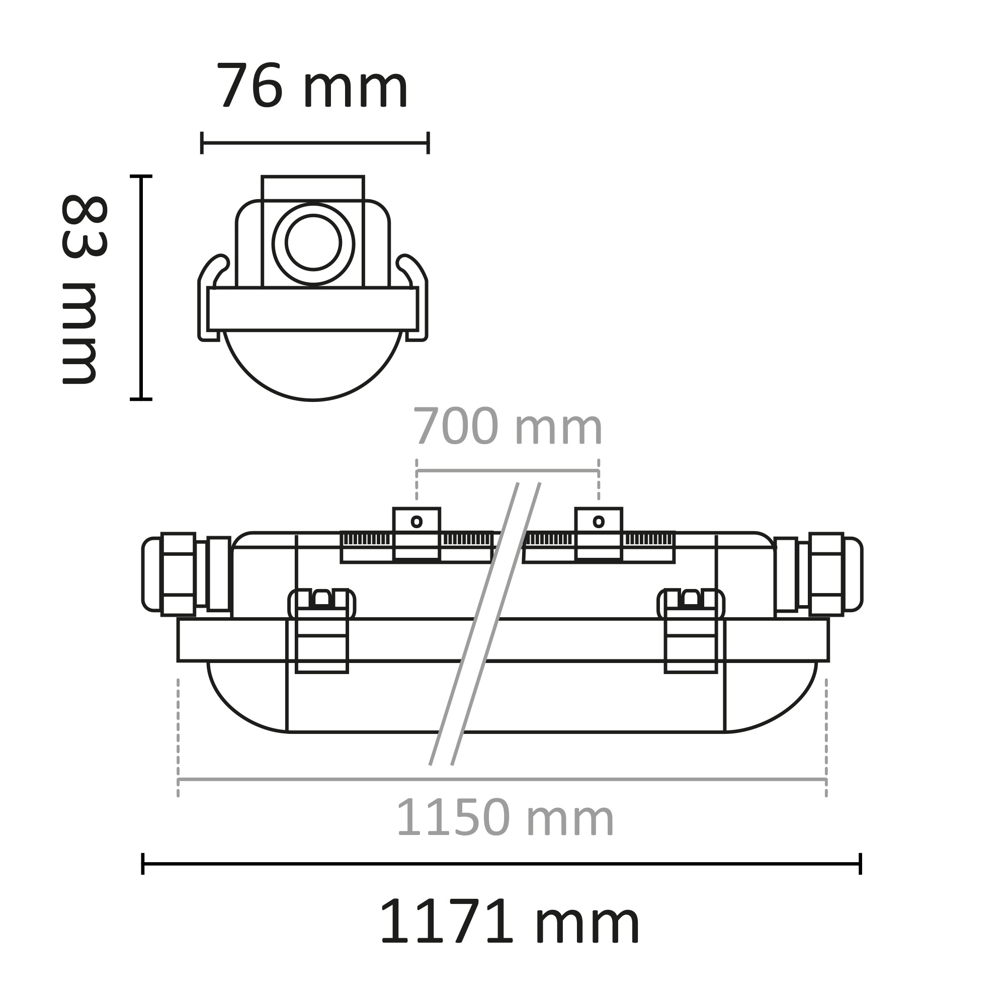 Denne armaturen er egnet for bruksområder som industri, lager, parkeringshus, låver osv. D-merket, IP65, klasse I