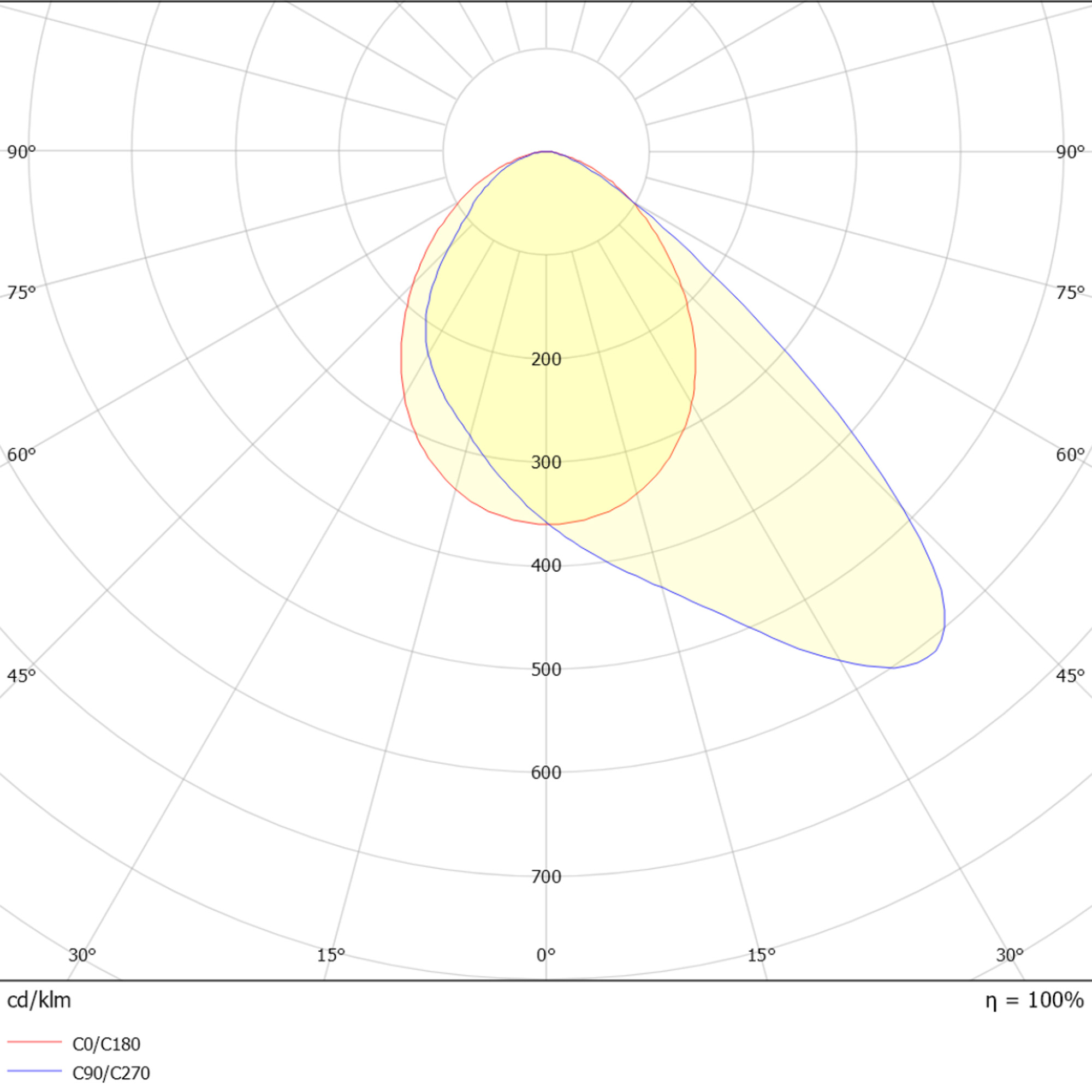 Utstrålingsvinkel (°)