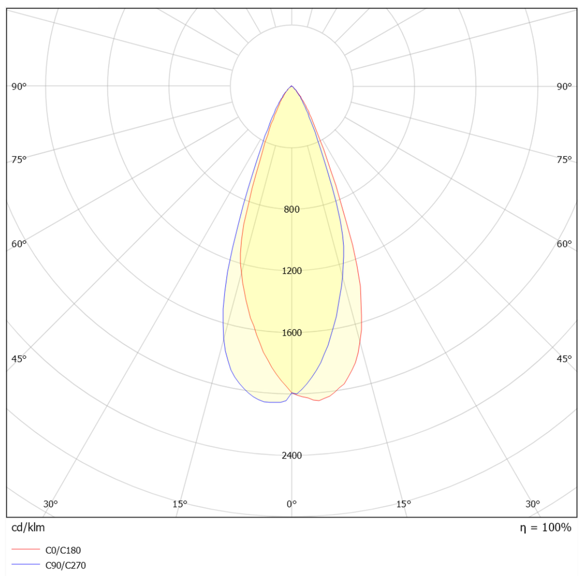 Armaturen kan roteres 350° horisontalt og vippes 90° vertikalt. Lysfordelingen er justerbar fra 15° til 55°.