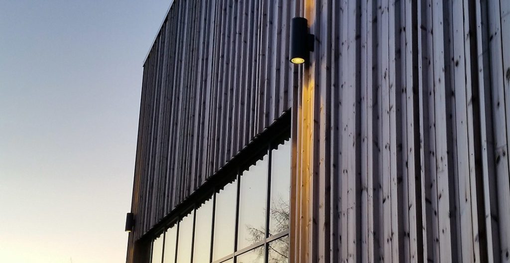 Mjøstårnet lyser opp langs E6`en og er et helt unikt bygg som er reist av massive limtreelementer. Ikke nok med at hele Mjøstårnet er bygget av tre, så er det også brukt mye treverk inne i selve bygget. Bygget stod ferdig 1. mars 2019. Kennet Skretteberg vår distriktssjef i Buskerud sier det er en ære å få lov til å levere kvalitetsbelysning til et så kult prosjekt. – Det finnes ikke noen ligende bygg her i Norge, og da er det ekstra jo gøy å få dette prosjektet, sier Skretteberg. Bygget i seg selv er et blikkfang som det er umulig og ikke se langs veien, og nå med utendørsbelysning fra Unilamp skinner bygget som aldri før. – På et slikt praktbygg er det jo klart man må ha skikkelig fasadebelysning sier Skretteberg. Han mener det er viktig å møte kunden og velge belysning som står i stil med bygget samtidig som den dekker belysningsbehvoet. Valget falt på å bruke Tube MAXI som er en spesialbehandlet utendørs armatur og passer ypperlig til å lyse opp store arealer og byggninger både til private og offentlige miljøer. Armaturen leveres enten med lys både oppe og nede, eller kun lys nede. På byggningen er det brukt 13 Tube MAXI med 1x38W nedlys, og 20 2x36W med opp/nedlys.